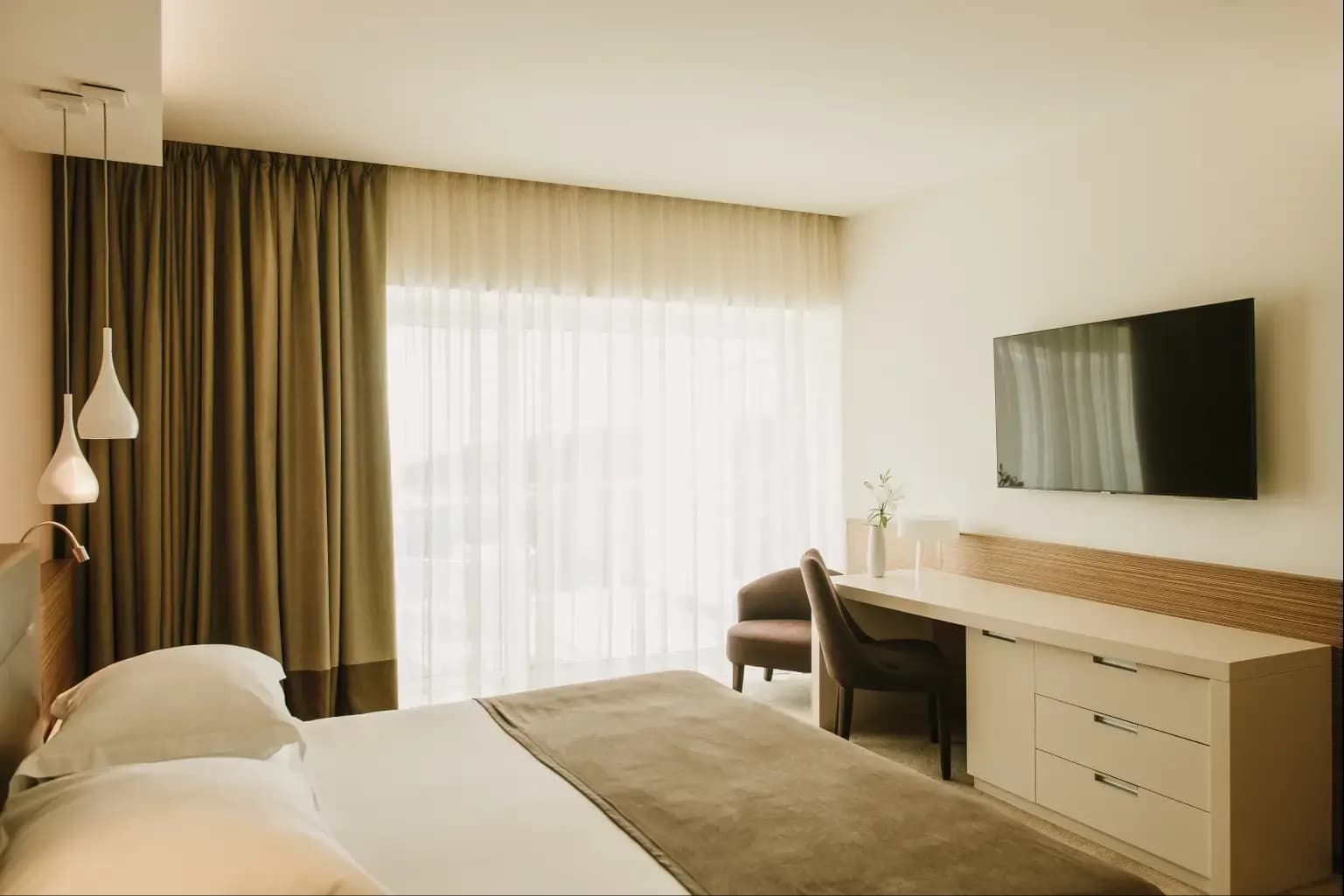 The Junior Suite is a cozy and stylish retreat. Perfect for couples or solo travelers, it features a comfortable living area, a well-appointed bathroom, and modern decor. Enjoy the views and thoughtful amenities that ensure a pleasant and relaxing experience.